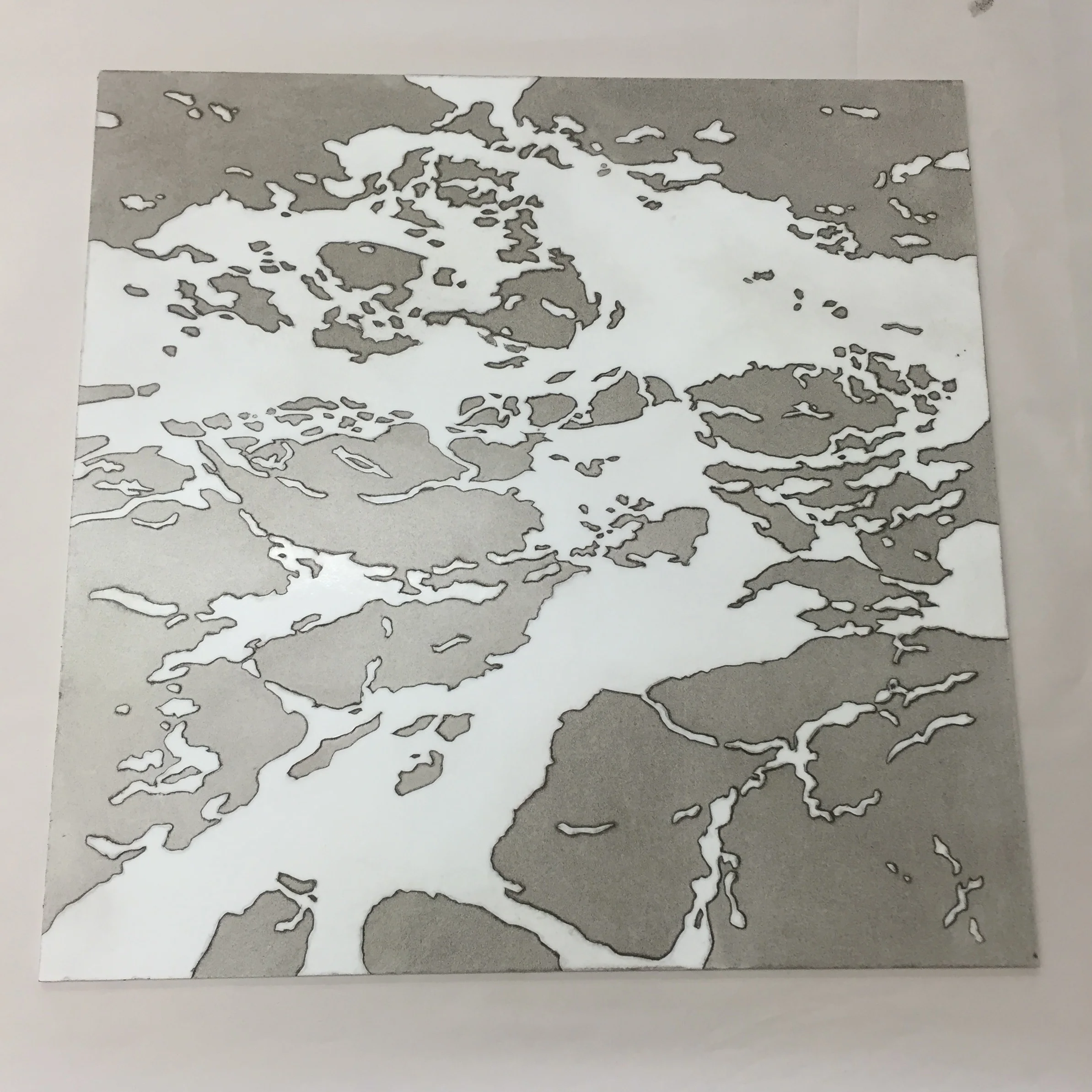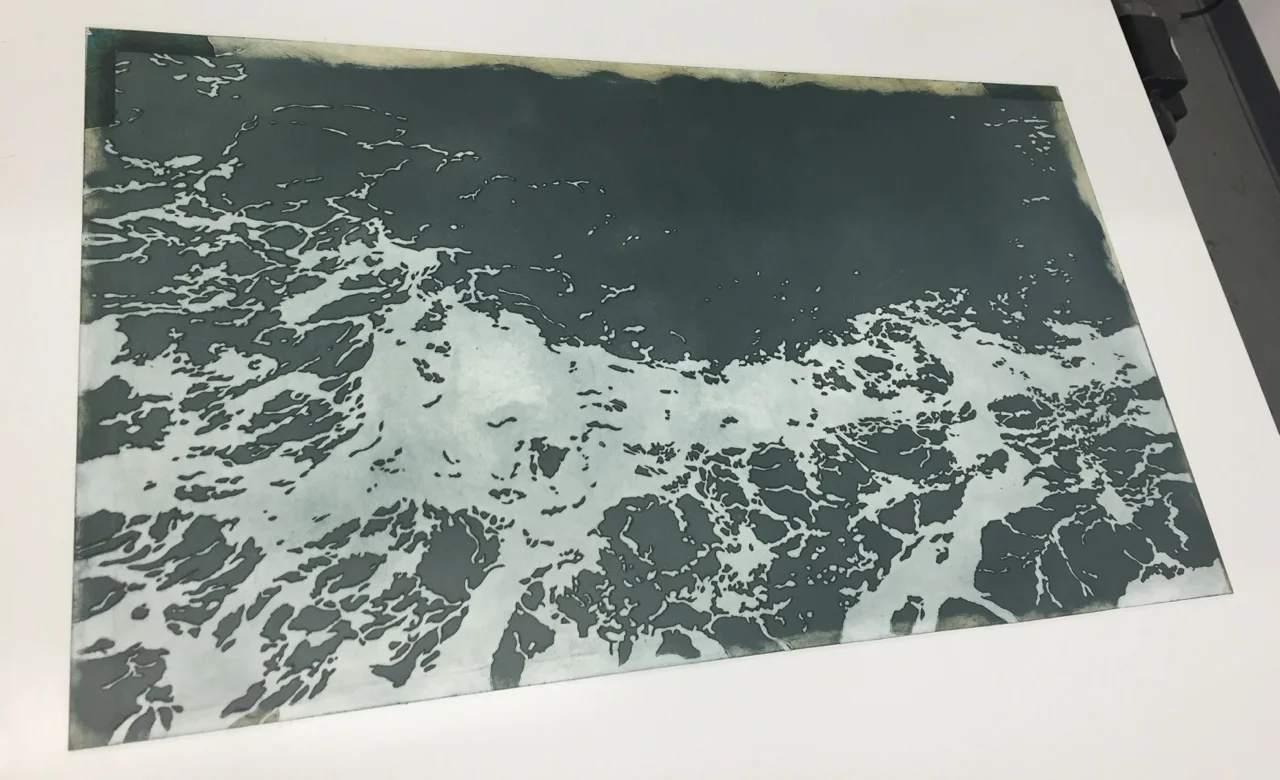 The project really began in earnest with a studio visit in 2014. After we discussed the technique and intent behind the my paintings, Amanda worked on experimenting with different printmaking processes that could be used to create works on paper that paralleled the paintings. After a number of tests, we came back to the first technique she had suggested - a variation of collagraph specially suited for the images we were trying to create.